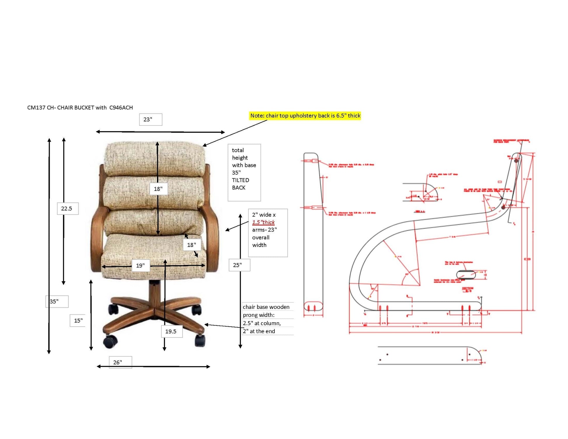The Chromcraft C137-946 swivel tilt caster arm chair is extremely comfortable and well made. The solid wood chair has an upholstered seat and back for extra comfort. The tension of the tilt on the chair can be adjusted and set to your preference for your convenience. This chair is available in different fabrics or vinyl, and your choice of wood finish. You get to customize this chair to complement your home's decor. This will allow you to have a gorgeous chair that will look like it was made for your kitchen. Minor assembly required. Chair # C137946.