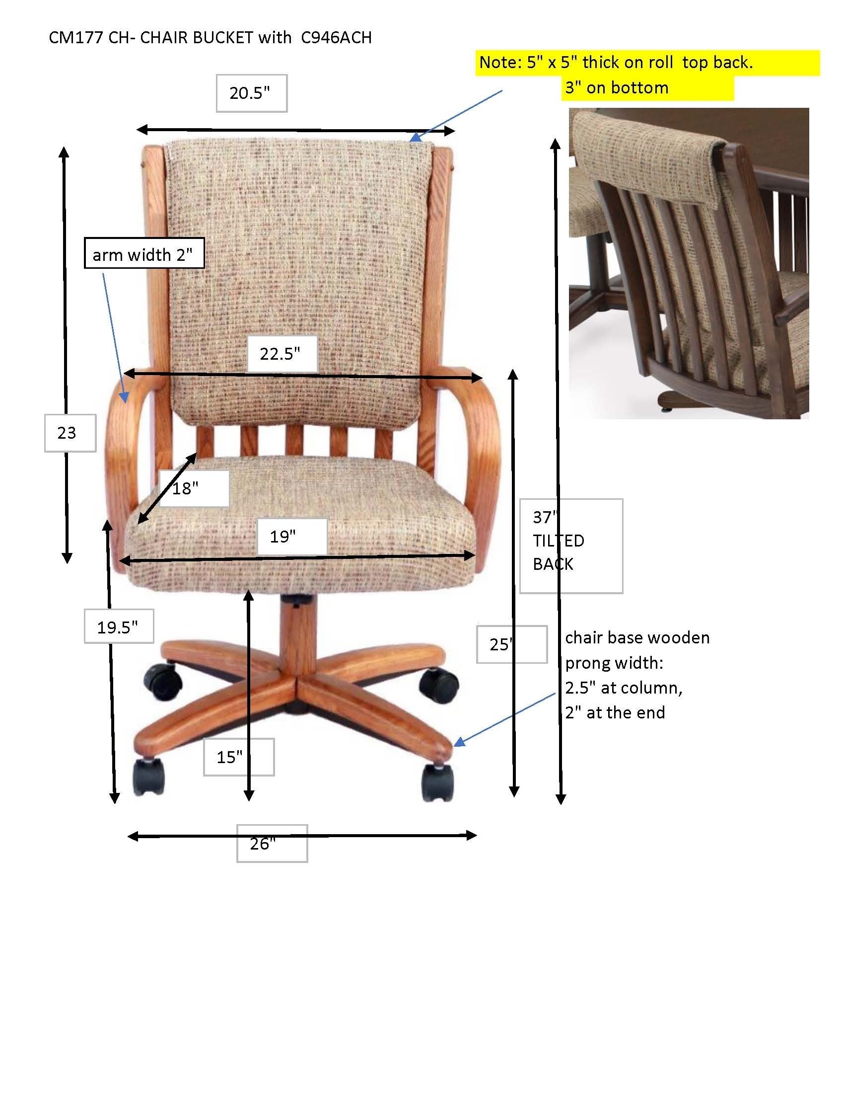 | Dimensions | Approximate Chair Dimensions: Inside Seat: 19"W x 18"D Floor to Top of Arm: 26" Floor to Top of Seat: 19.5" Chair Overall Dimensions: 26"W x 37"Hx 26"D |
