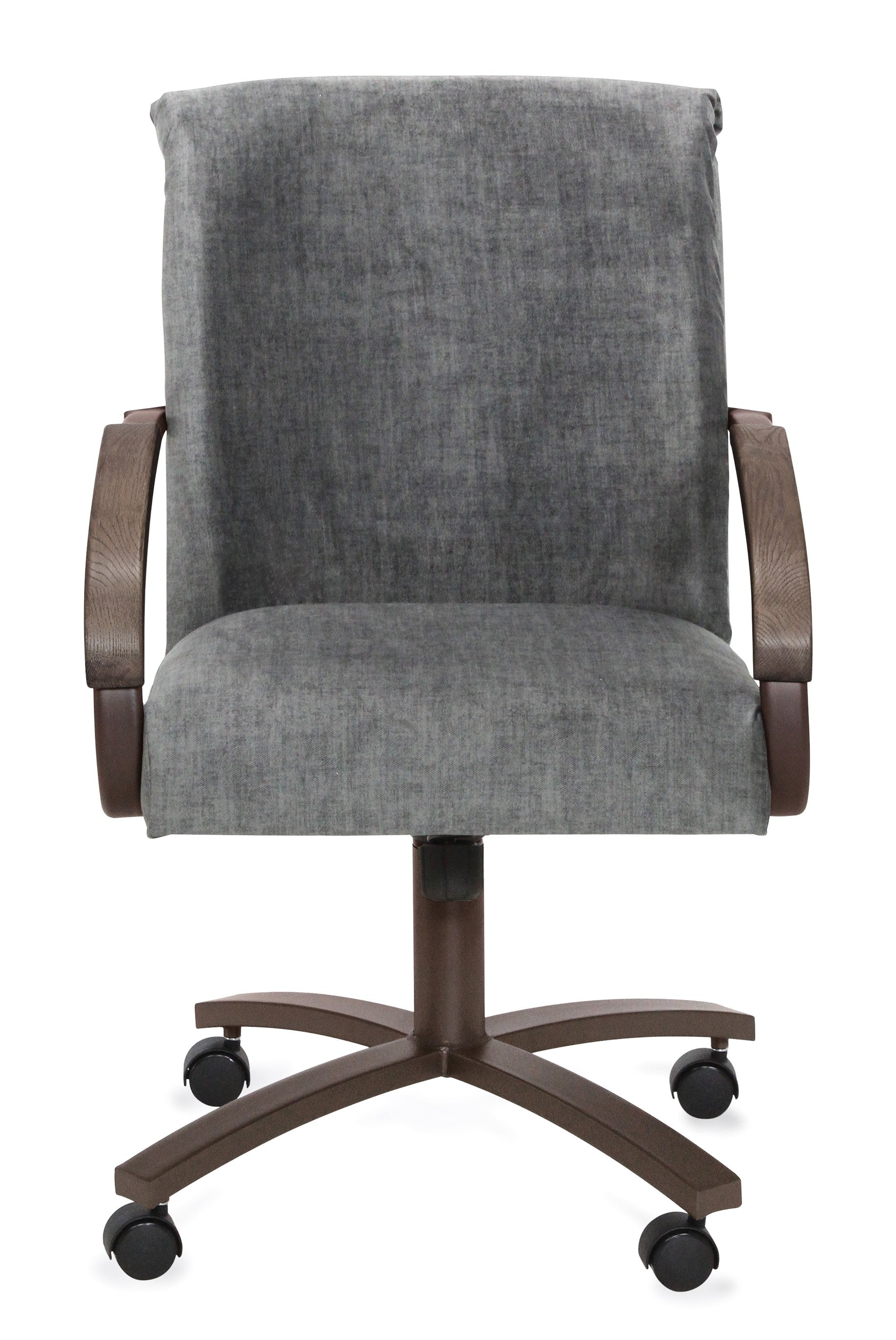 The Chromcraft Metalcraft O&S swivel tilt caster arm chair is comfortable and stylish. The Aged Iron metal and smoke wood finish accents are absolutely gorgeous. The chair is available in different fabrics and vinyls. 1 chair included. Minor assembly required. Chair Model MM602OS-MP635O.